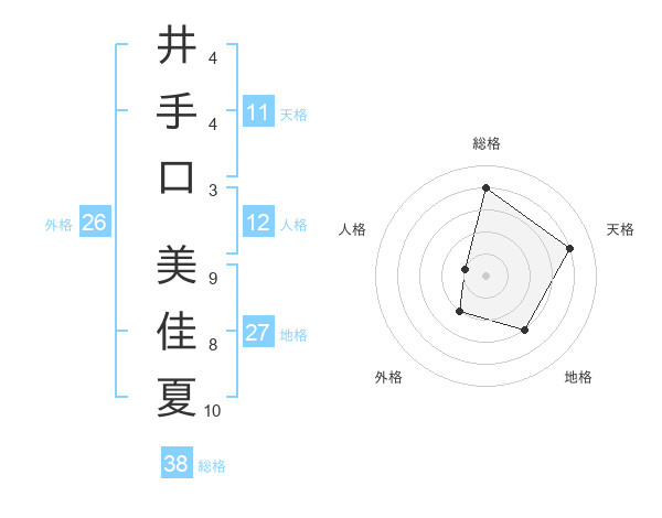 井手口 美佳夏さんを姓名の画数から五運を鑑定