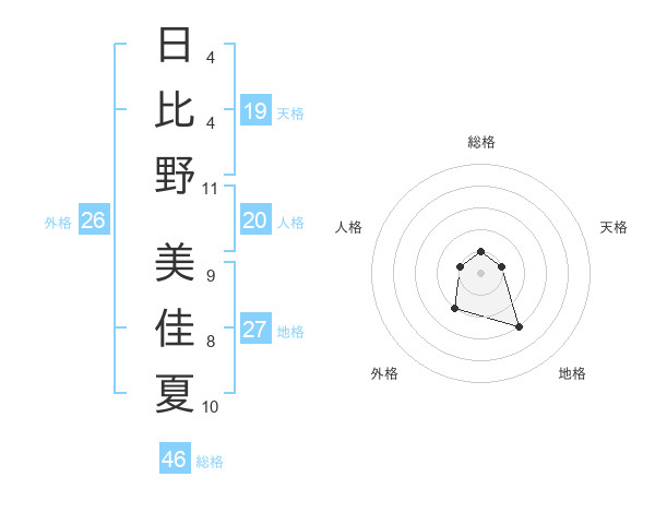 日比野 美佳夏さんを姓名の画数から五運を鑑定