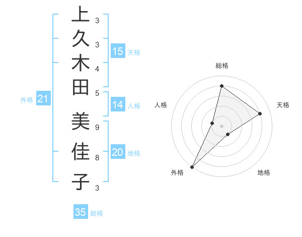 上久木田 美佳子さんを姓名の画数から五運を鑑定