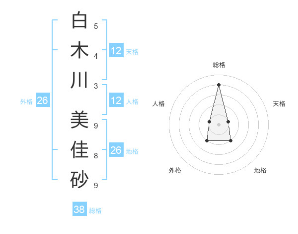 白木川 美佳砂さんの総格は38画の4点!
