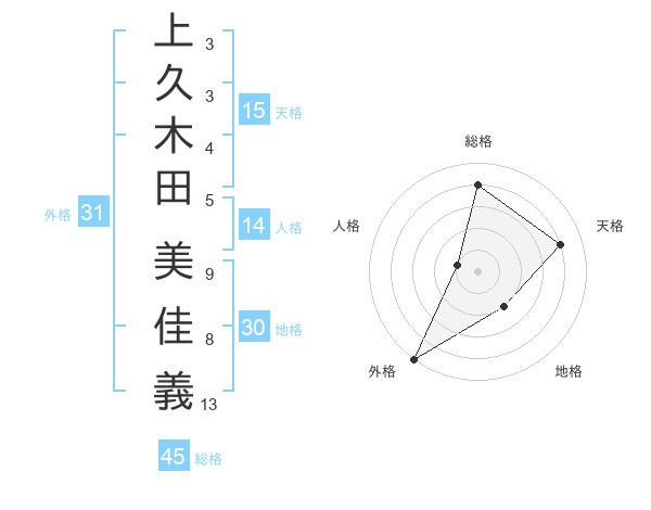 上久木田 美佳義さんの総格は45画の4点!