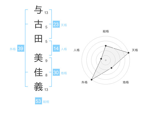 与古田 美佳義さんの外格は39画の5点!