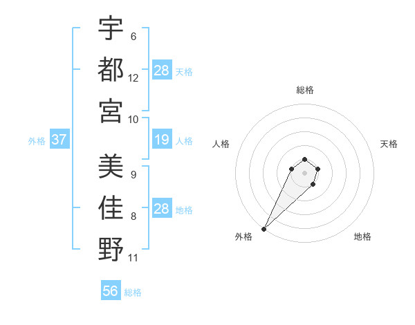 宇都宮 美佳野さんを姓名の画数から五運を鑑定