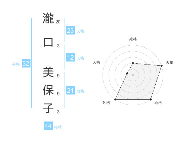 瀧口 美保子さんの天格は23画の5点!