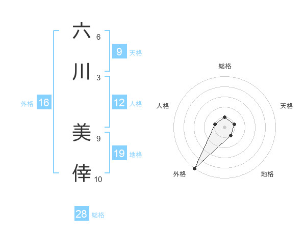 六川 美倖さんの外格は16画の5点!