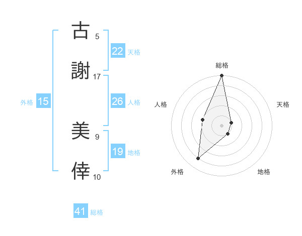 古謝 美倖さんの総格は41画の5点!