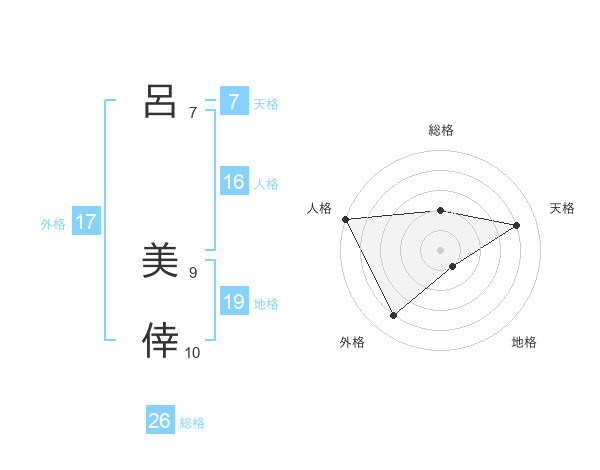 呂 美倖さんの総格は26画の2点!