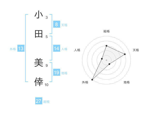 小田 美倖さんの天格は8画の4点!