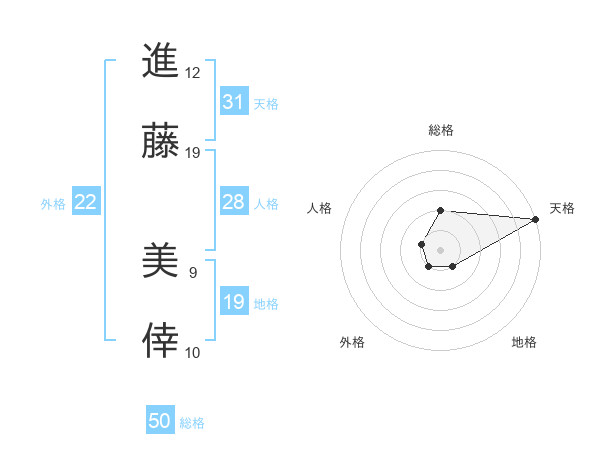 進藤 美倖さんの総格は50画の2点!