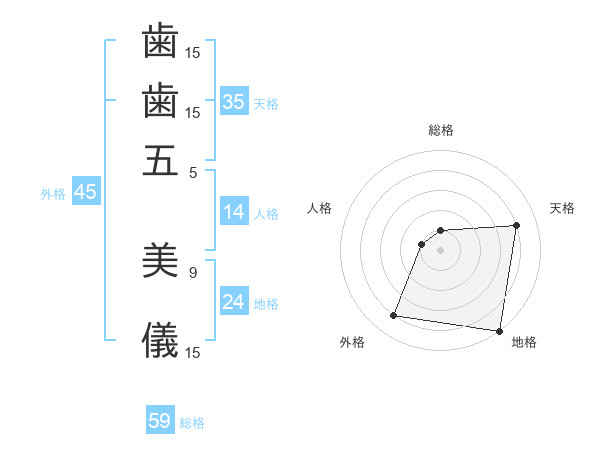 歯歯五 美儀さんを姓名の画数から五運を鑑定