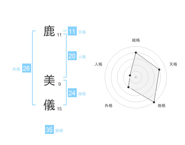 鹿 美儀さんを姓名の画数から五運を鑑定