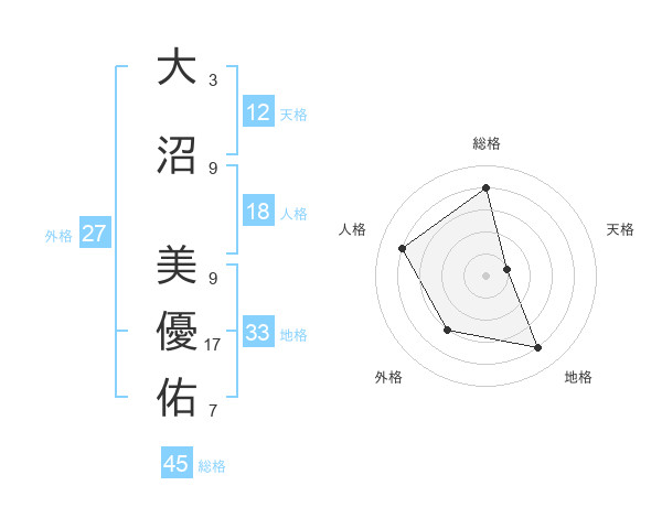 大沼 美優佑さんの総格は45画の4点!