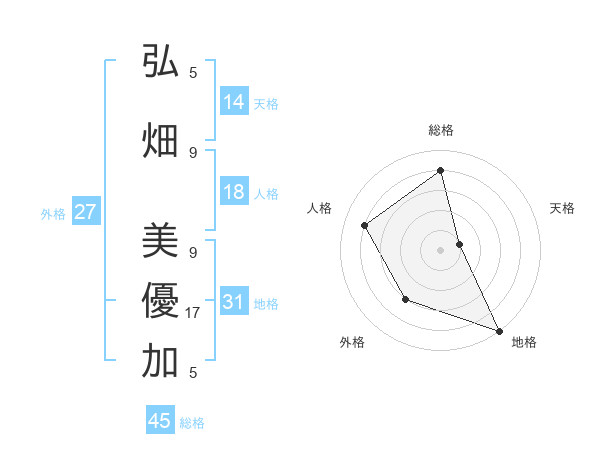 弘畑 美優加さんの総格は45画の4点!