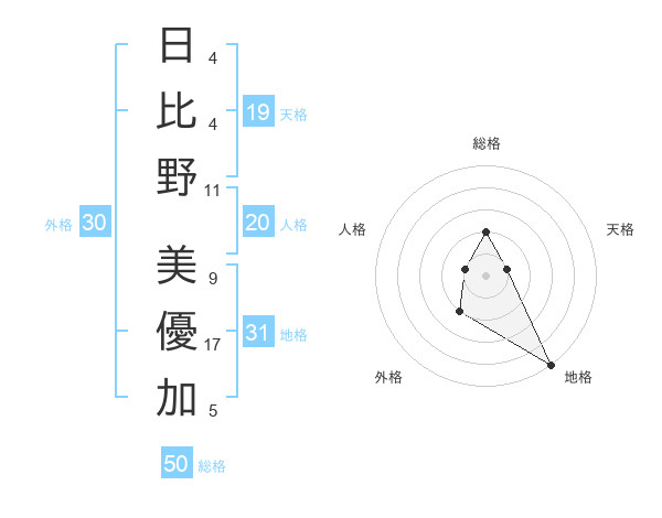 日比野 美優加さんを姓名の画数から五運を鑑定