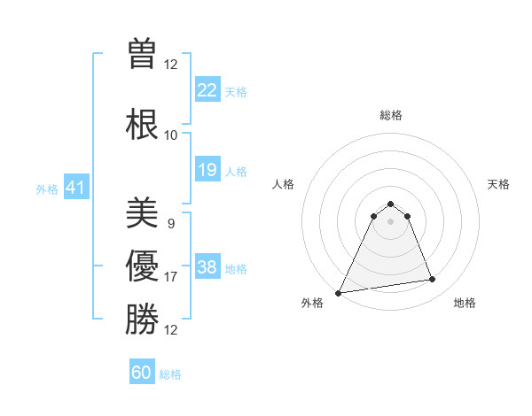 曽根 美優勝さんを姓名の画数から五運を鑑定
