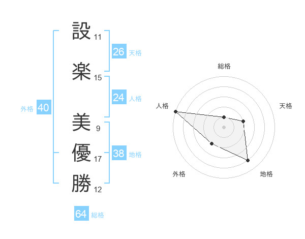 設楽 美優勝さんを姓名の画数から五運を鑑定