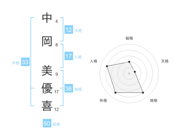 中岡 美優喜さんを姓名の画数から五運を鑑定