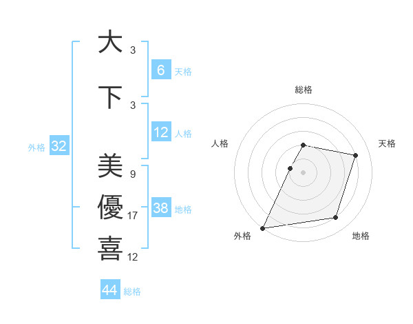 大下 美優喜さんを姓名の画数から五運を鑑定