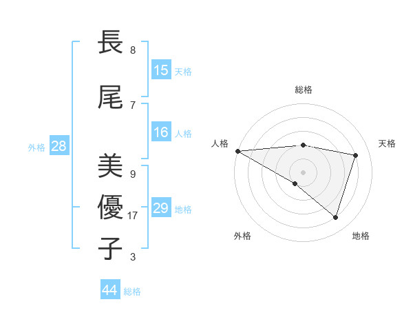 長尾 美優子さんを姓名の画数から五運を鑑定
