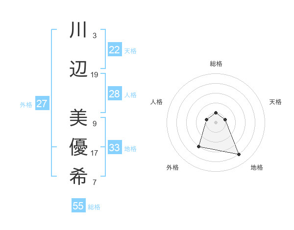 川辺 美優希さんを姓名の画数から五運を鑑定