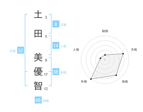 土田 美優智さんの地格は38画の4点!