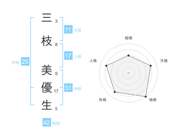 三枝 美優生さんの天格は11画の4点!