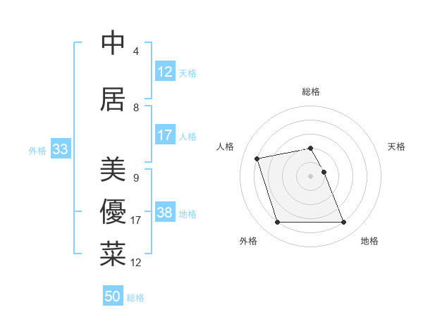 中居 美優菜さんを姓名の画数から五運を鑑定