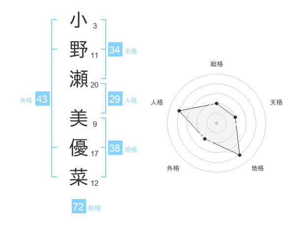 小野瀬 美優菜さんを姓名の画数から五運を鑑定