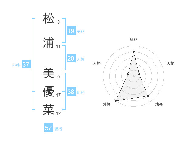 松浦 美優菜さんを姓名の画数から五運を鑑定