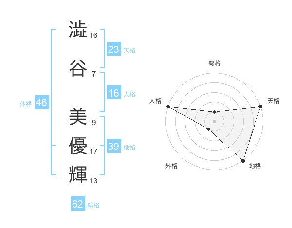 澁谷 美優輝さんの総格は62画の1点!