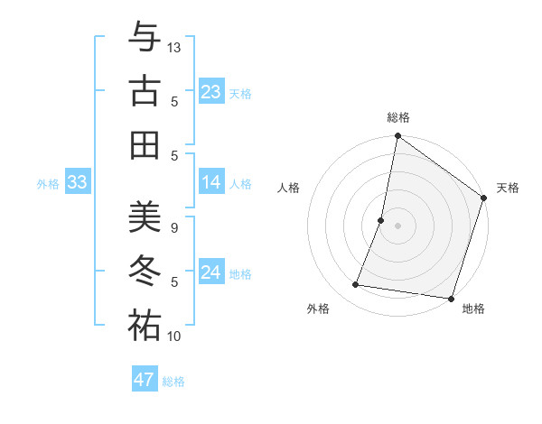 与古田 美冬祐さんの総格は47画の5点!