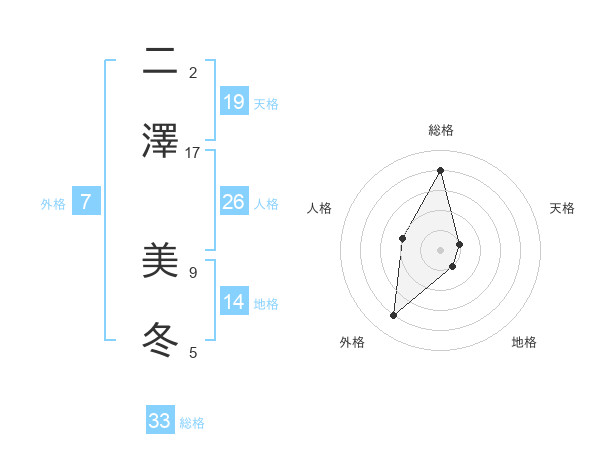二澤 美冬さんの総格は33画の4点!