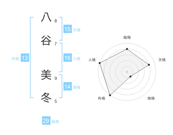 八谷 美冬さんの外格は13画の5点!