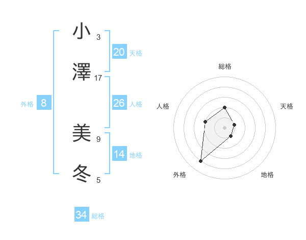 小澤 美冬さんを姓名の画数から五運を鑑定