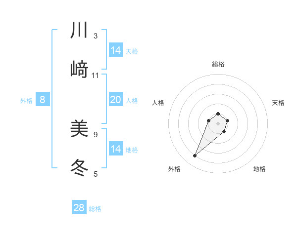 川﨑 美冬さんを姓名の画数から五運を鑑定