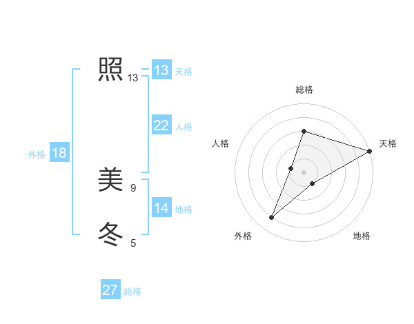 照 美冬さんを姓名の画数から五運を鑑定