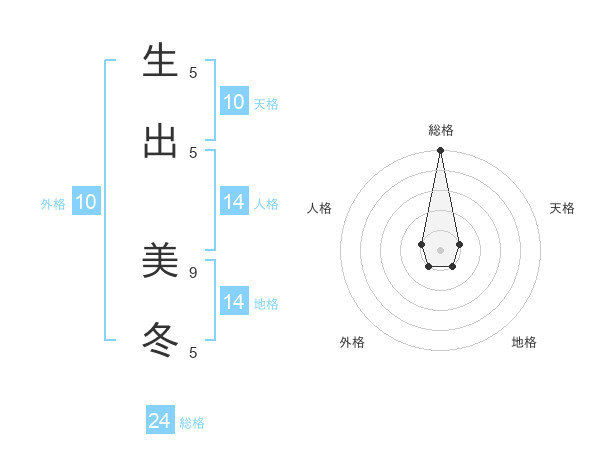 生出 美冬さんの総格は24画の5点!