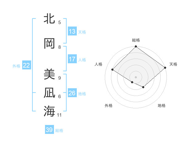 北岡 美凪海さんの総格は39画の5点