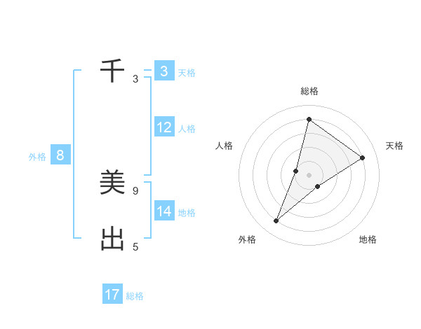 千 美出さんの総格は17画の4点!