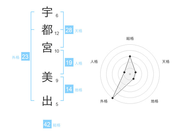 宇都宮 美出さんの外格は23画の5点!
