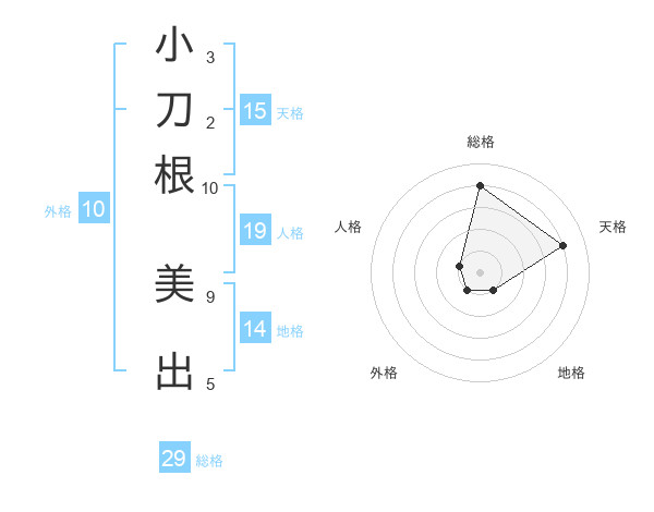 小刀根 美出さんを姓名の画数から五運を鑑定