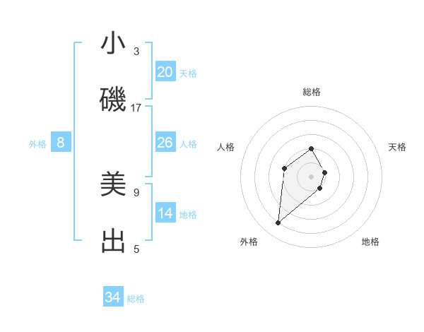 小磯 美出さんの外格は8画の4点!