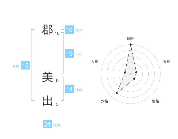 郡 美出さんの総格は24画の5点!