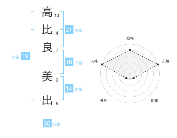 高比良 美出さんの天格は21画の5点!