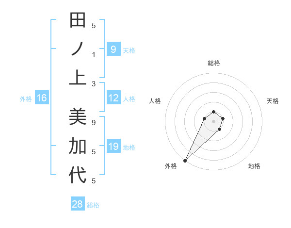 田ノ上 美加代さんを姓名の画数から五運を鑑定