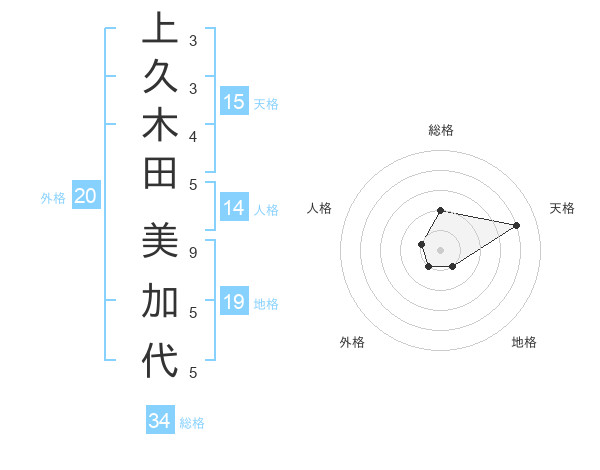 上久木田 美加代さんを姓名の画数から五運を鑑定
