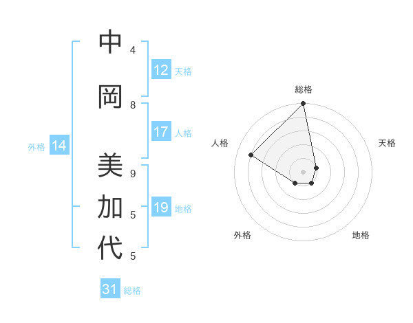 中岡 美加代さんを姓名の画数から五運を鑑定