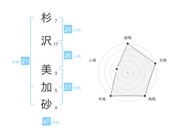 杉沢 美加砂さんを姓名の画数から五運を鑑定