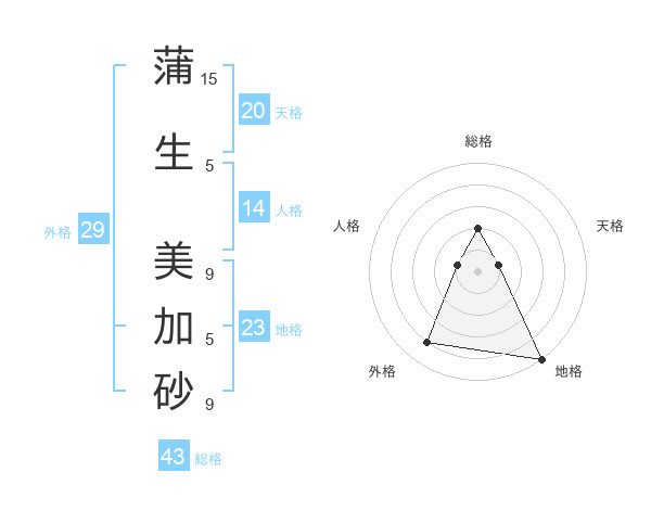蒲生 美加砂さんを姓名の画数から五運を鑑定