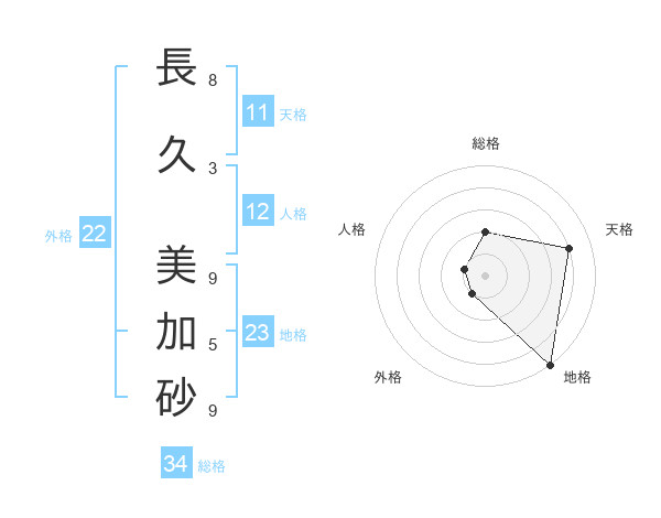 長久 美加砂さんの総格は34画の2点!